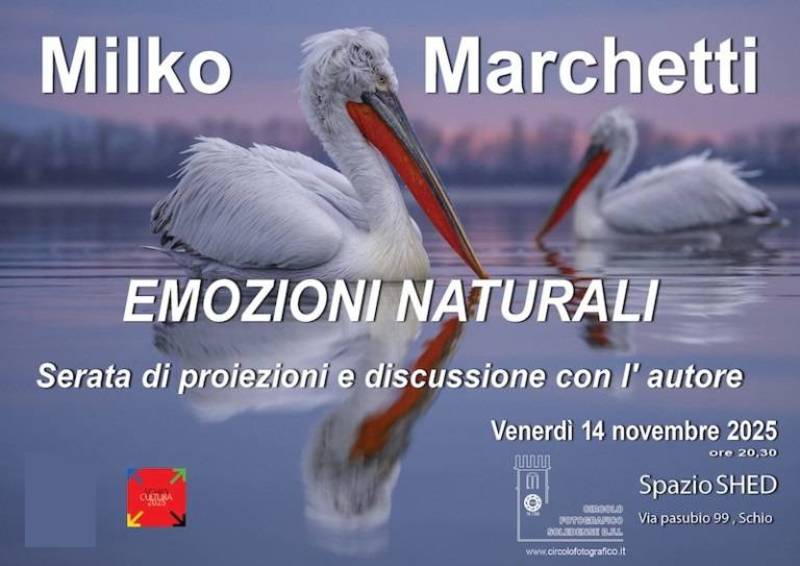 A inaugurare questa rassegna di 5 incontri riservati a fotografi naturalisti avremo graditissimo ospite a Schio il ferrarese Milko Marchetti, fotografo di fama internazionale, vincitore di 12 Coppe del mondo di fotografia naturalistica e di molteplici concorsi internazionali.