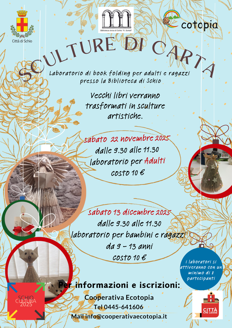 La Biblioteca civica "R. Bortoli" di Schio e Cooperativa Ecotopia presentano laboratori di book folding per trasformare libri in splendide sculture artistiche.