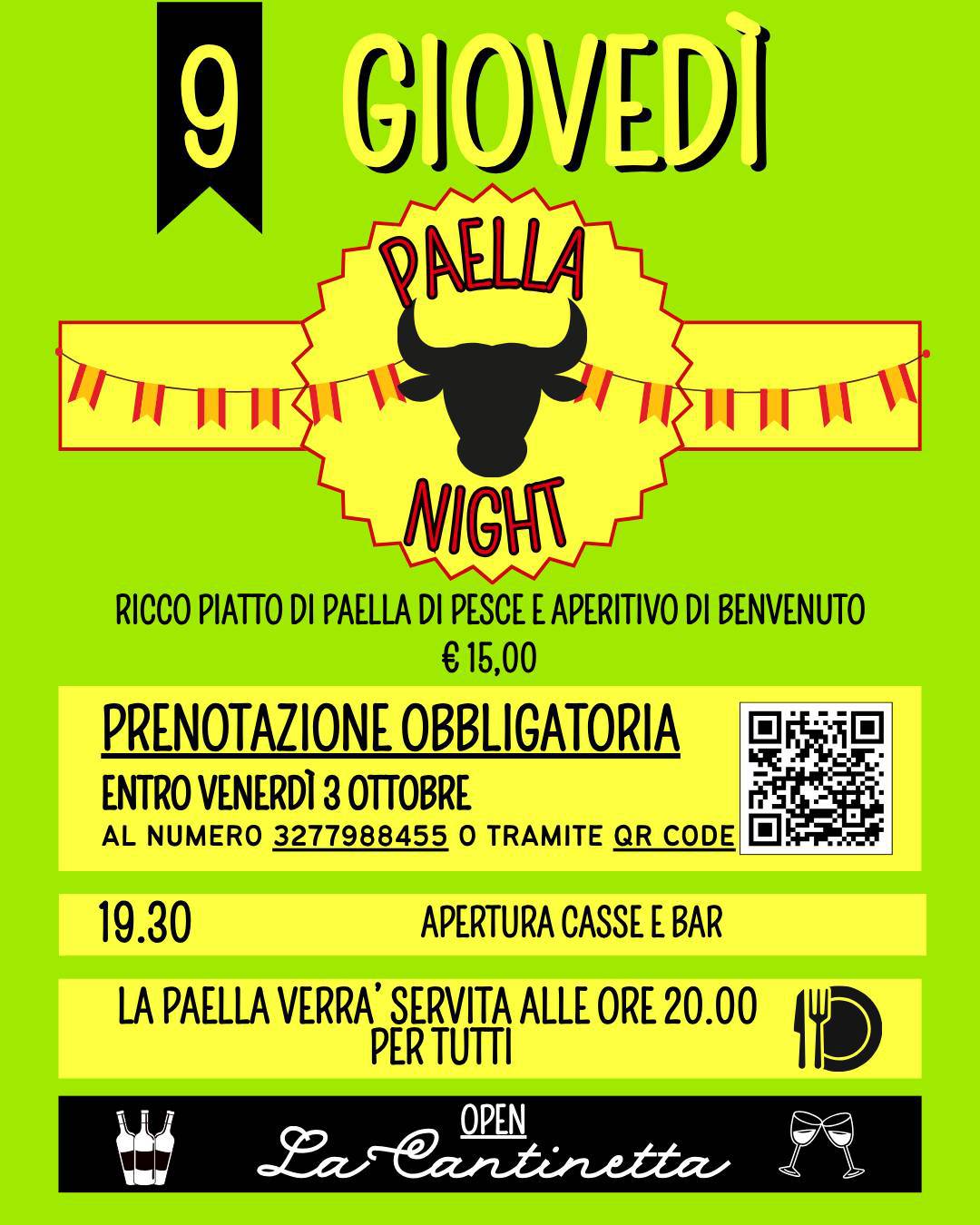Ore 20:00 Paella Night | Prenotazione obbligatoria entro il 3 ottobre al 3277988455 o al link (€15)