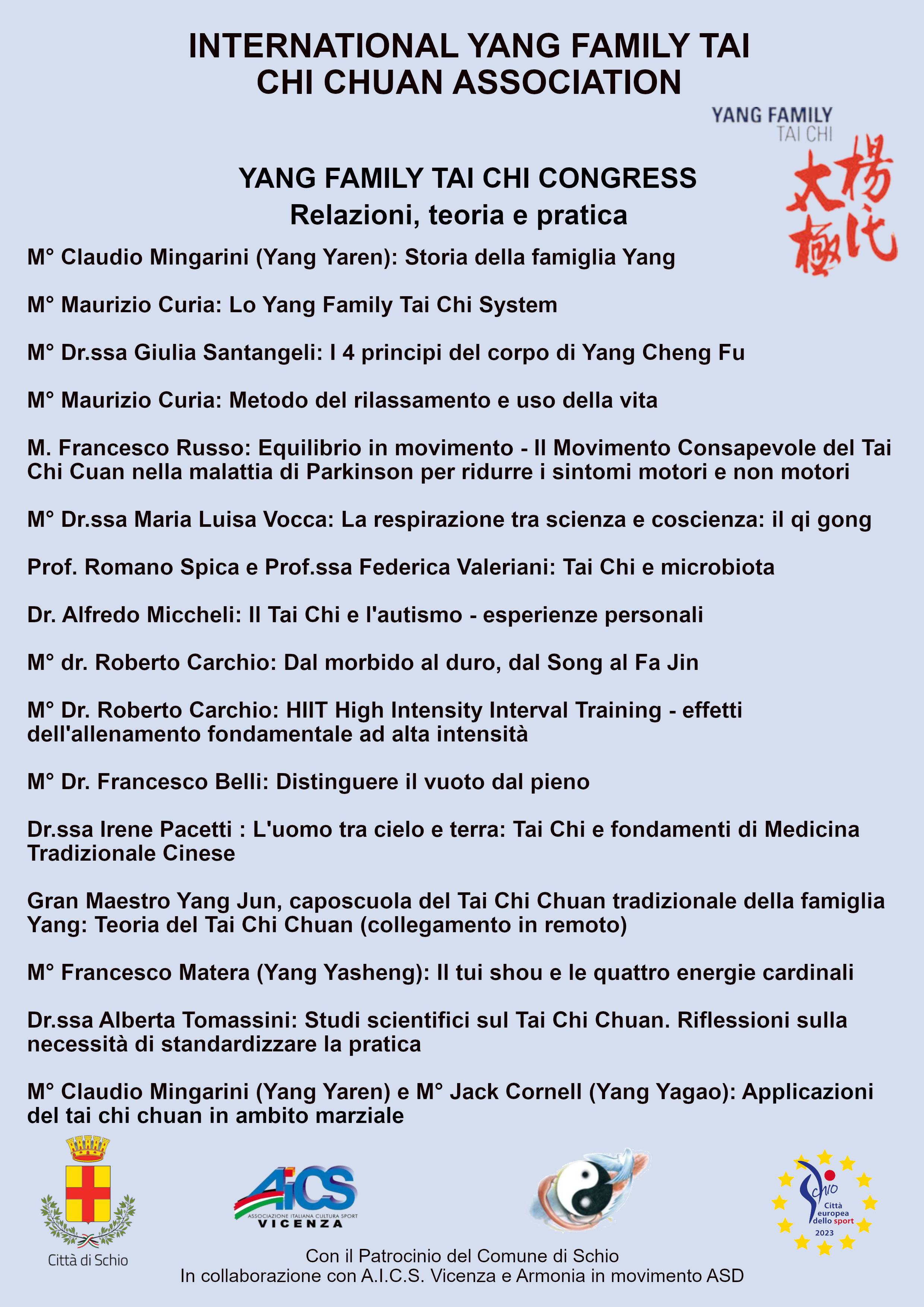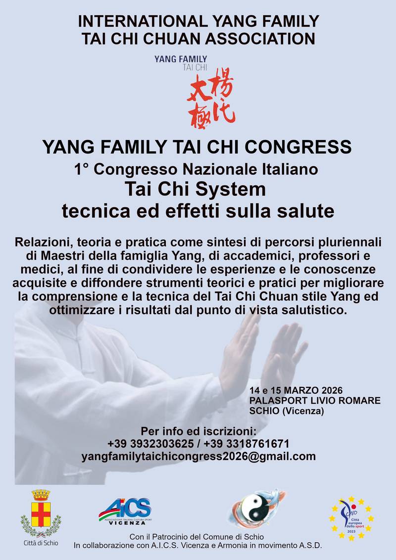 Un evento unico che unisce la tradizione secolare della Famiglia Yang alla ricerca scientifica moderna. Organizzato dall'International Yang Family Tai Chi Chuan Association, il congresso esplora il Tai Chi come sintesi perfetta tra arte marziale, filosofia e medicina.