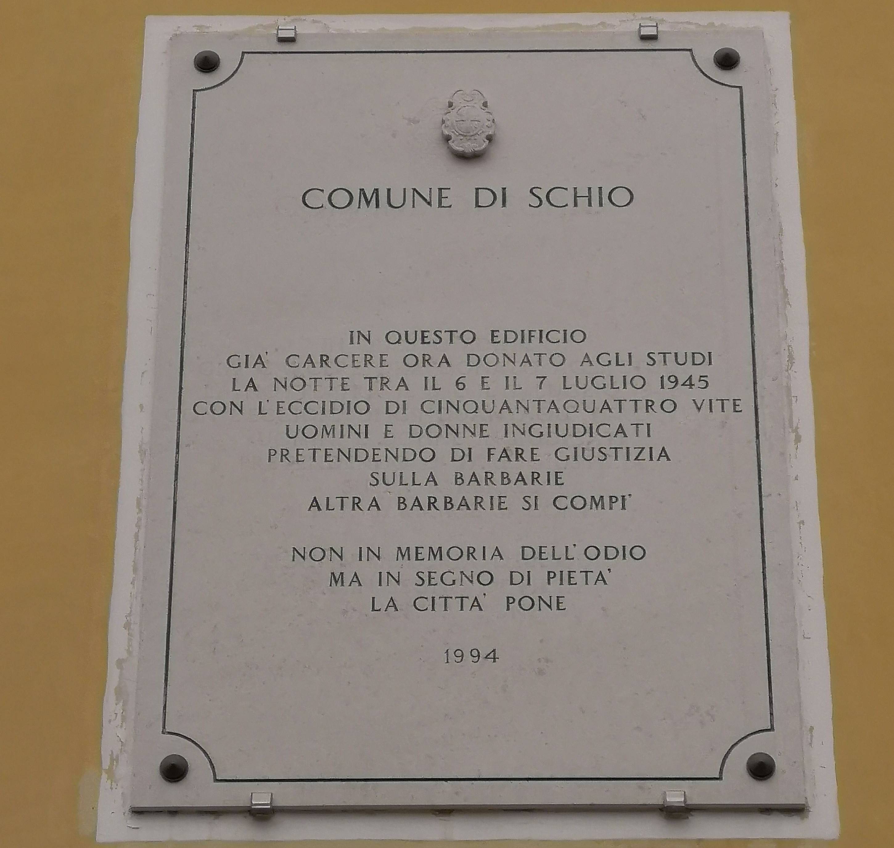 In the mid-17th century, the first hospital for poor people was built on a four-way crossroads known as the Carobbo. Known as the Baratto; since 1988 it has hosted the Renato Bortoli Public Library. The façade is embellished with an elegant triple lancet window and six quatrefoil windows of the period, while the wing that continues along the Via Baratto, was added in the mid-18th century, including with it the church of Saints Cristopher and Francis. The third building, the so-called Former Prisons, built at the beginning of the 19th century, is visible from inside the library. After the hospital was transferred at the beginning of the 19th century, the complex hosted various public offices, among which the headquarters of the Financial Police. In the internal court, we find two memorial plaques, one in memory of the Schio massacre that took place in July 1945, the other commemorating the Civil Accord Pact, signed in May 2005. The library has an open shelf documentation archive of considerable importance, with a significant collection of books and multimedia material, and more than one hundred magazine subscriptions. The library contains important historic collections and document archives, among which: the legacies of the Pasini-Salasco family, Senator Alessandro Rossi, Giovanni Calendoli, architects Ferruccio Chemello and Vincenzo Bonato. The historical and antique section contains well-preserved ancient books, scrolls, geographic maps and codes from the 15thcentury.