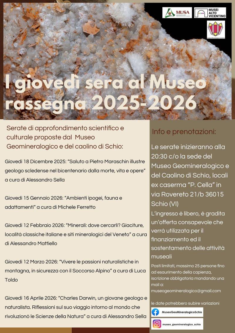 Un ciclo di serate di approfondimento scientifico e culturale promosse dal Museo Geomineralogico e del caolino di Schio.