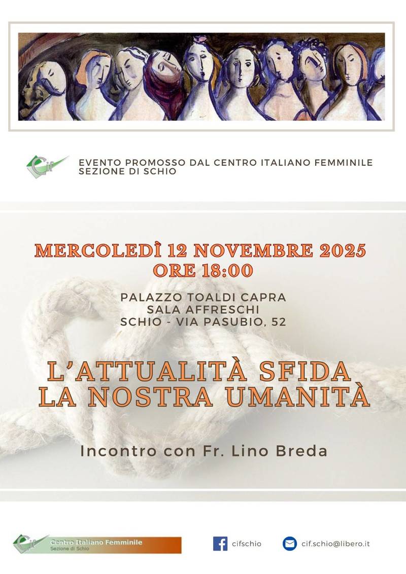 Un incontro promosso dal Centro Italiano Femminile, Sezione di Schio, con Fratel Lino Breda, per una riflessione profonda sui temi che interpellano la nostra società e la nostra umanità.