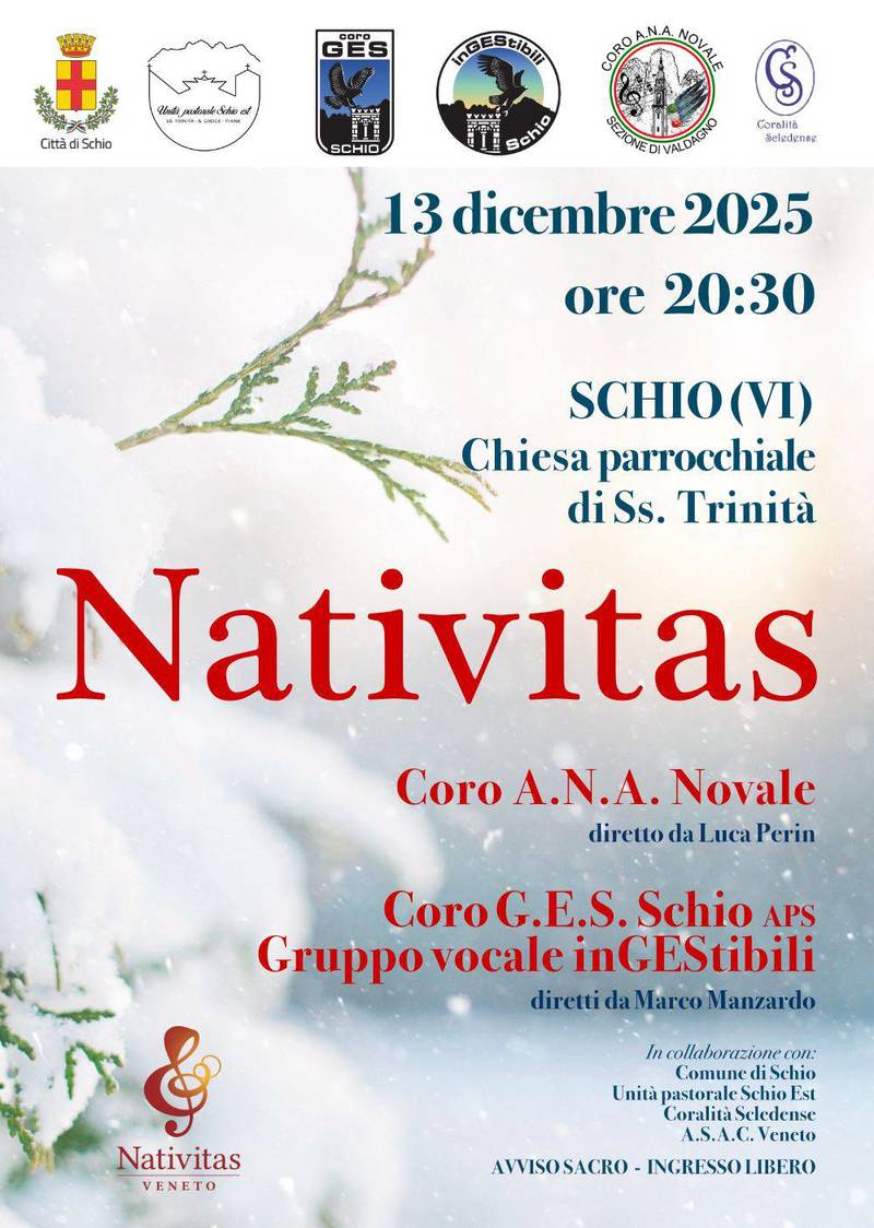 In collaborazione con la Città di Schio, Unità pastorale Schio Est, Coralità Scledense e A.S.A.C. Veneto si presenta il concerto Nativitas.