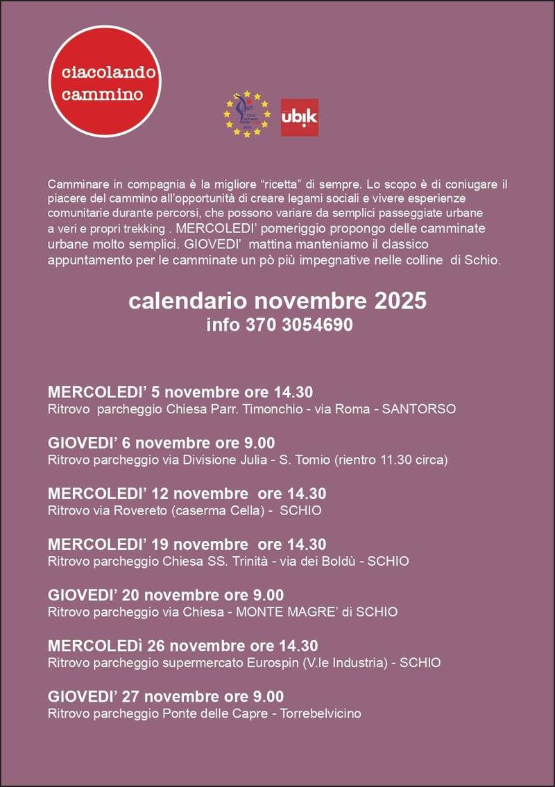 Ogni settimana, in diversi punti di Schio e dintorni, si parte per camminate e trekking aperti a tutte le età.