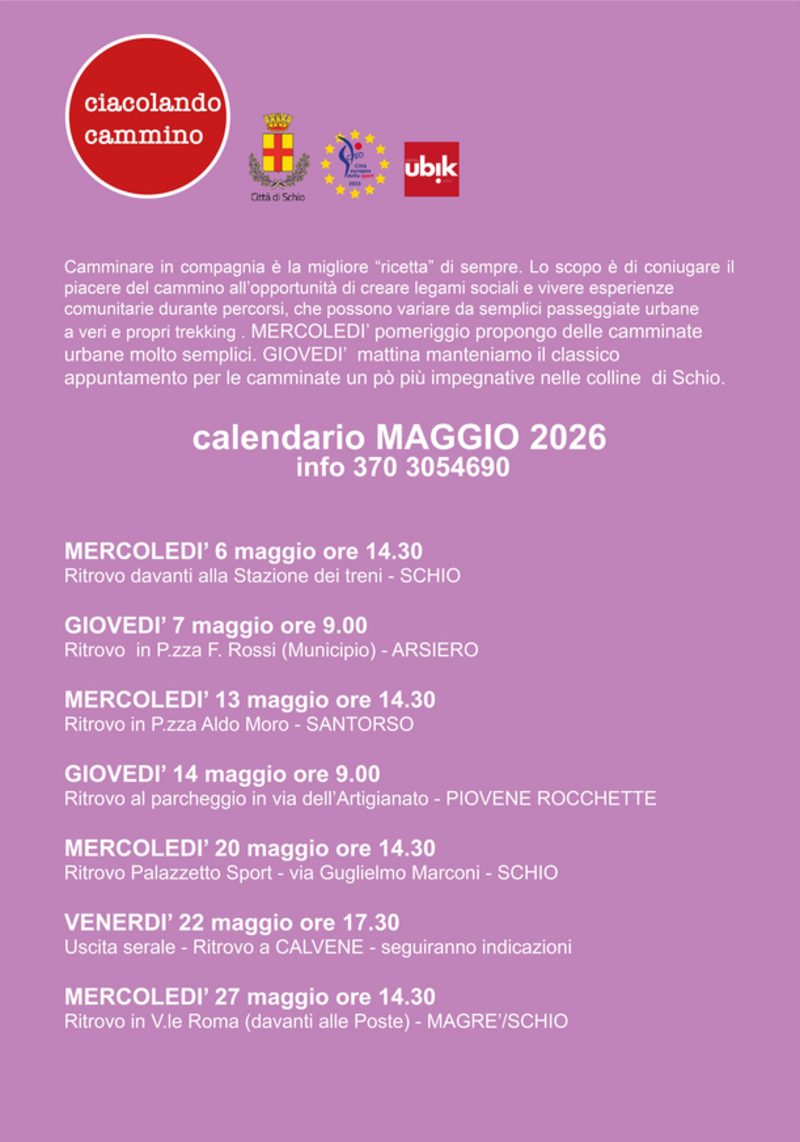 Ogni settimana, in diversi punti di Schio e dintorni, si parte per camminate e trekking aperti a tutte le età.
