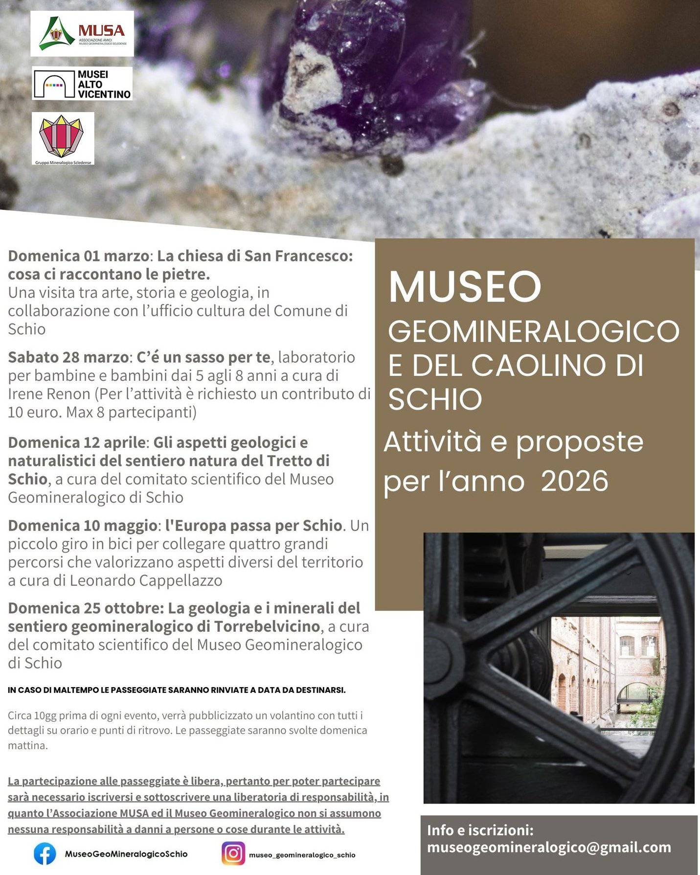 Rassegna attività anno 2026, Museo Geomineralogico e del Caolino di Schio