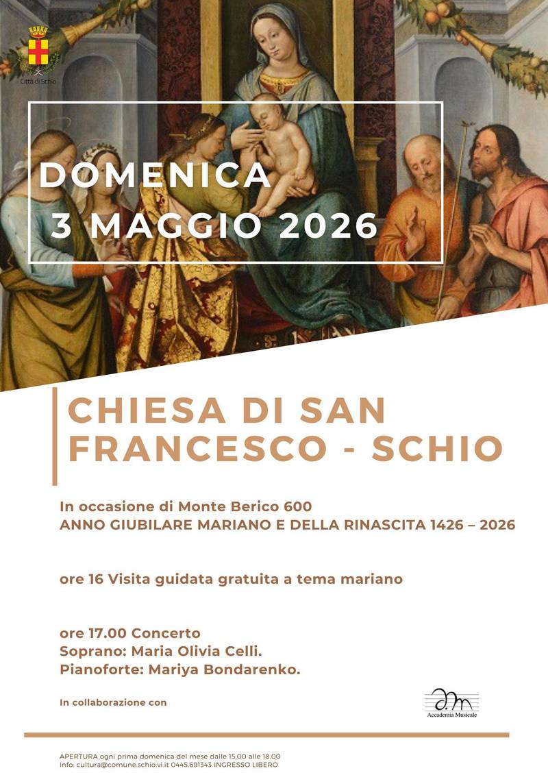 Un luogo affascinante, da scoprire più a fondo con la visita guidata gratuita a tema mariano alle 16.00 e il concerto alle ore 17.00 con il soprano Maria Olivia Celli e Mariya Bondarenko al pianoforte.