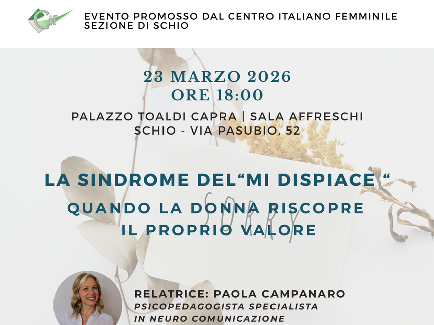 Il Centro Italiano Femminile Sezione di Schio promuove l'incontro "La sindrome del 'mi dispiace'", un...