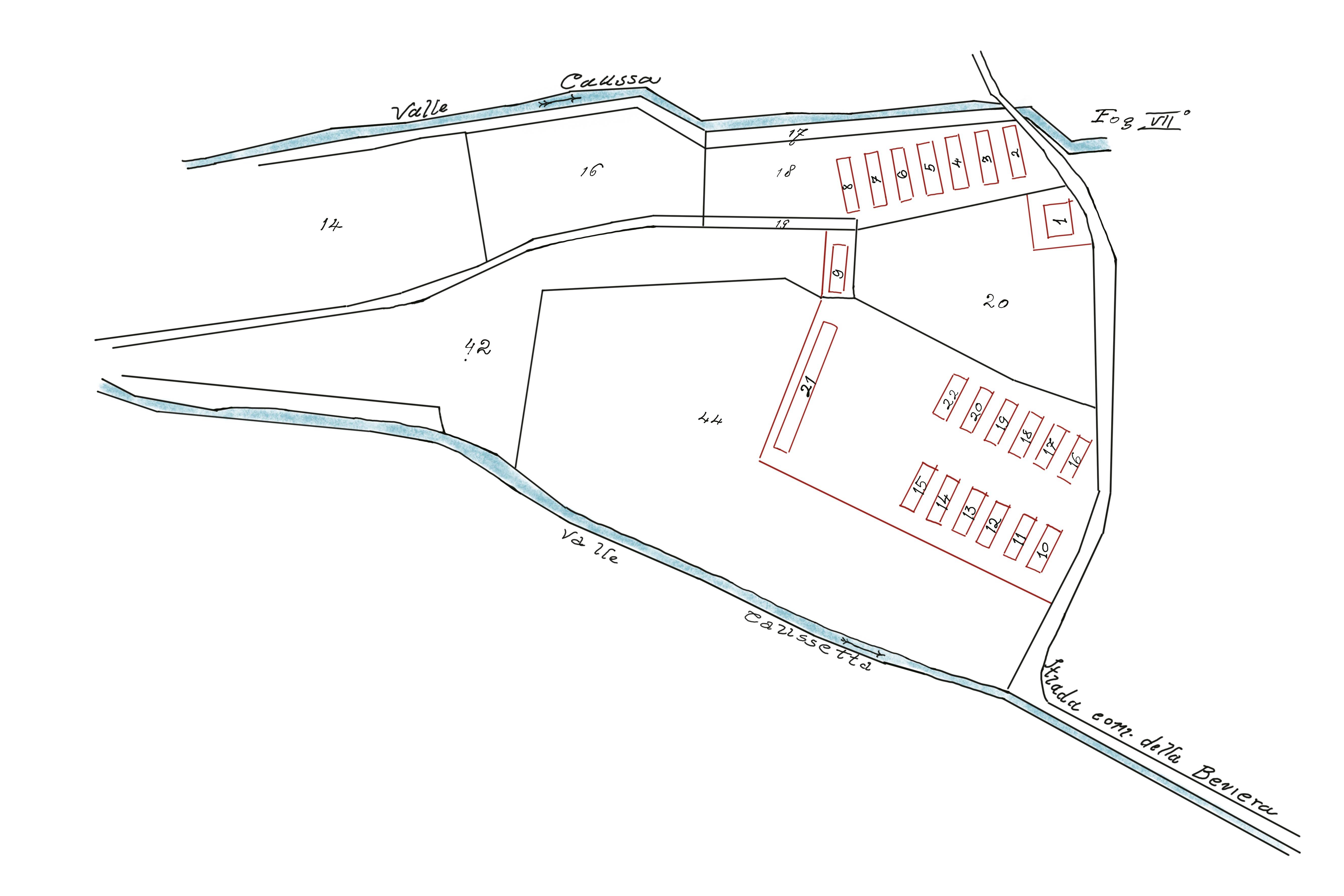 Cedute dall’Amministrazione militare al Comune, nel 1924 le baracche vennero successivamente vendute ai proprietari dei terreni su cui sorgevano: dalla n. 1 alla n. 8 a Giovanni Ruaro, dalla n. 9 alla n. 22 ai fratelli Virgilio, Valentino, Pietro e Antonio Cerisara.